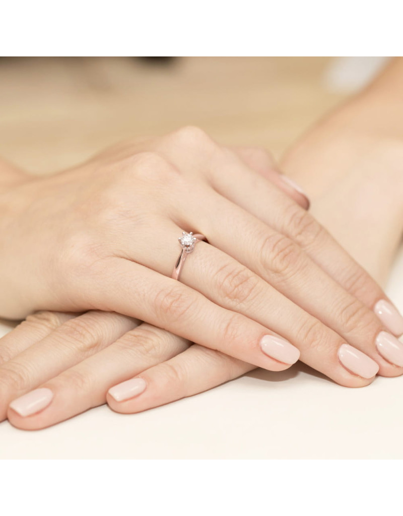 Luksusowy złoty pierścionek w eleganckim stylu z olśniewającym brylantem w ośmioramiennej koronie.