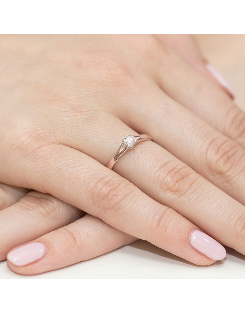 Stylowy złoty pierścionek z urzekającym brylantem w delikatnej oprawie.