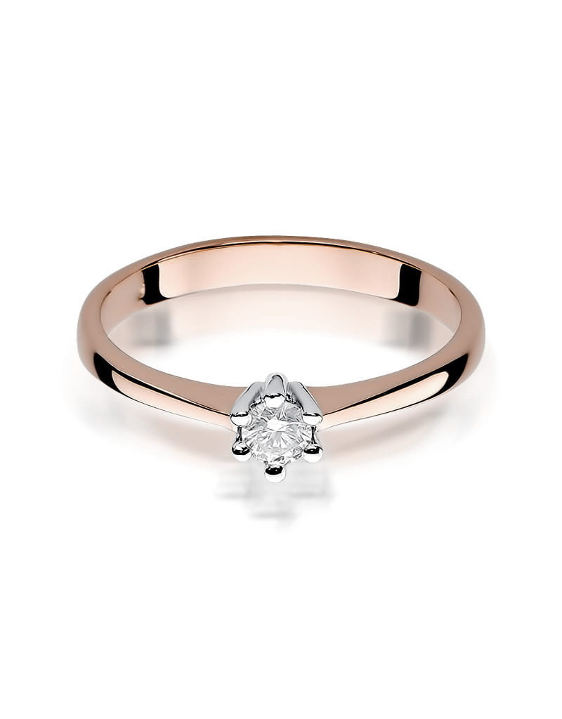 Luksusowy pierścionek w klasycznej oprawie z lśniącym brylantem w sześcioramiennej koronie.