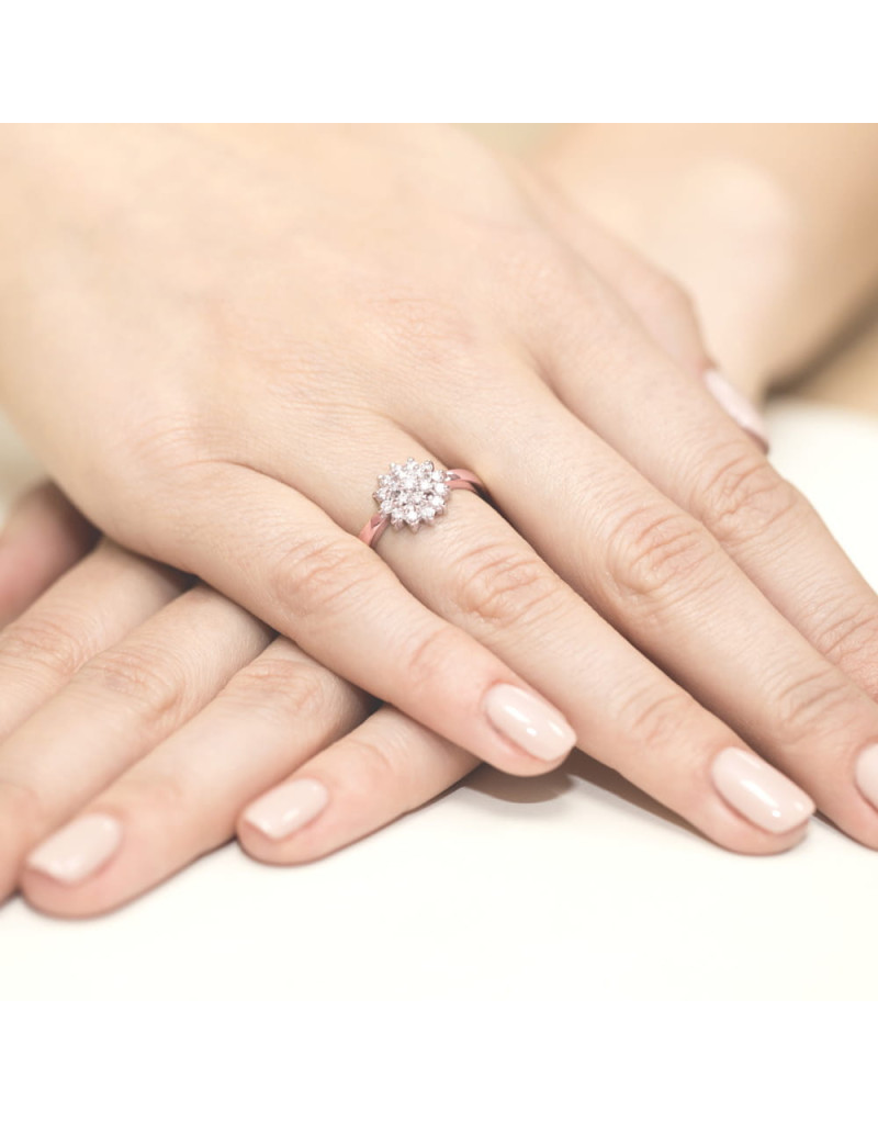 Niebywały blask złotego pierścionka z 19 brylantami.