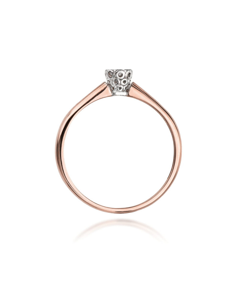 Klasyczny i delikatny pierścionek z różowego i białego złota z imponującym brylantem.