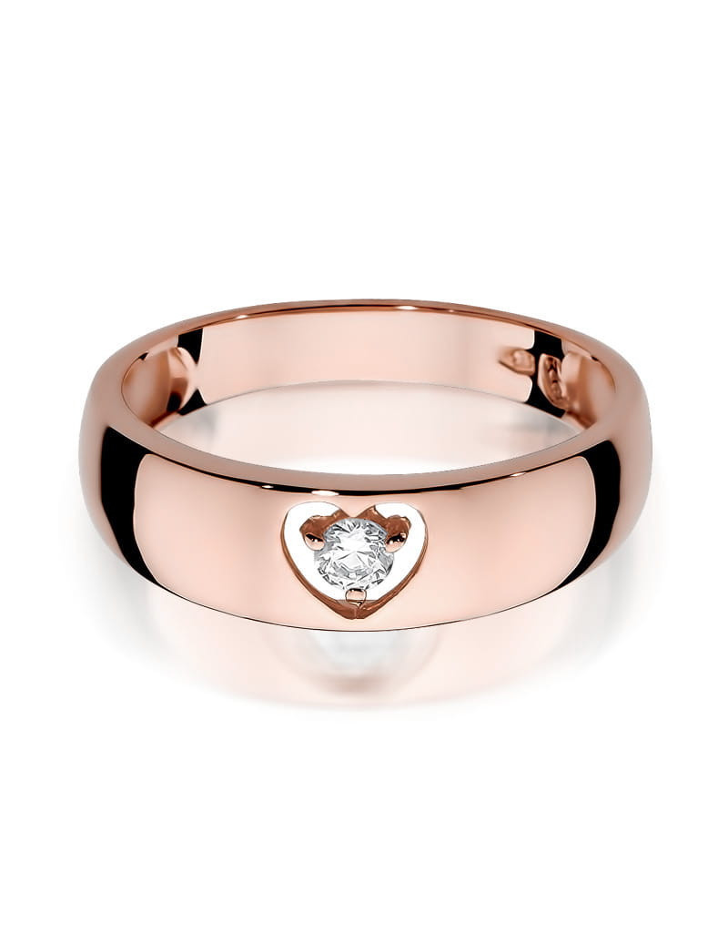 Urzekający pierścionek z różowego złota z olśniewającym brylantem w romantycznej oprawie w kształcie serca.