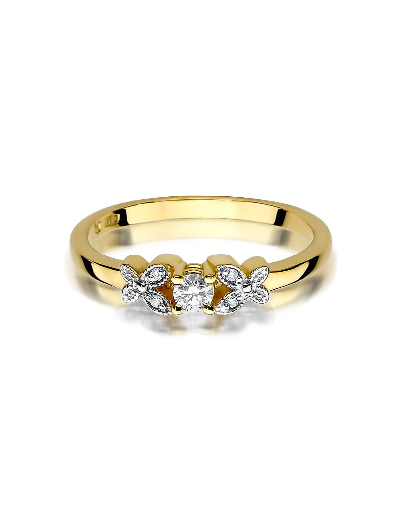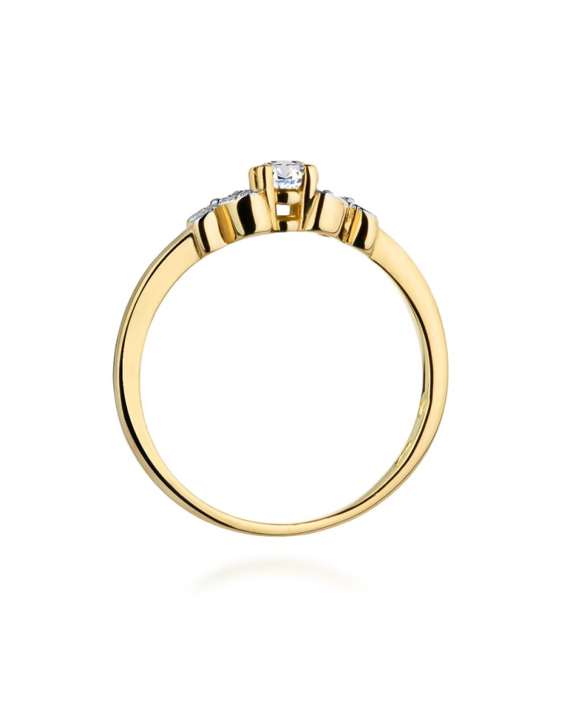Olśniewający pierścionek z żółtego złota z niepowtarzalną oprawą która podkreśla blask brylantów.