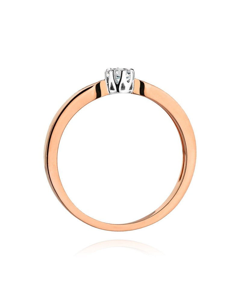 Klasyczny, ponadczasowy model pierścionka wykonany z różowego złota, z jednym głównym kamieniem jakim jest brylant o wielkości kamienia 0,08ct.