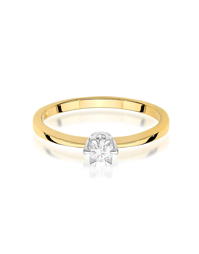 Elegancki wzór złotego pierścionka z niesamowitym blaskiem olśniewającego brylantu.