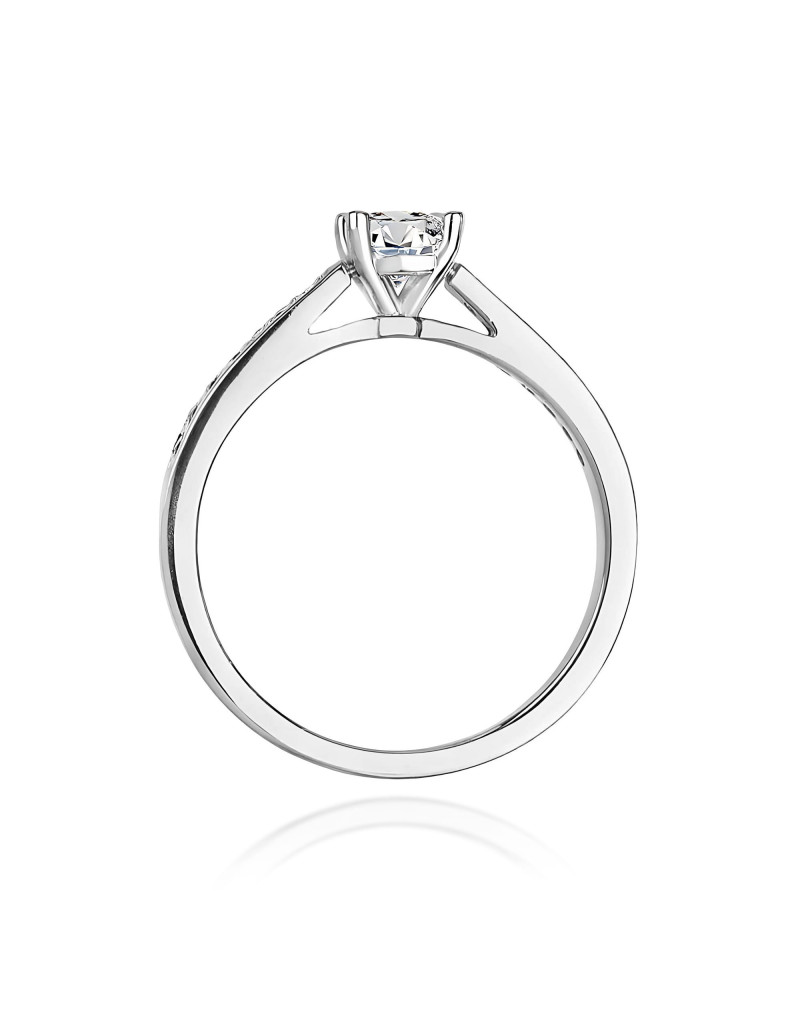Fascynujący, luksusowy pierścionek wykonany z białego złota z olśniewającymi brylantami.