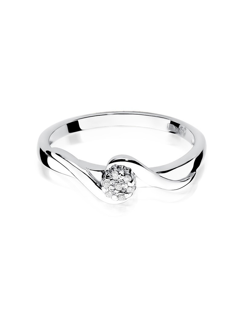Niebanalny pierścionek z białego złota z lśniącymi brylantami.