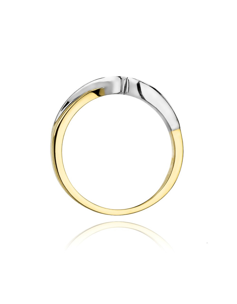 Delikatny dwukolorowy pierścionek z pełnym blasku brylantem.