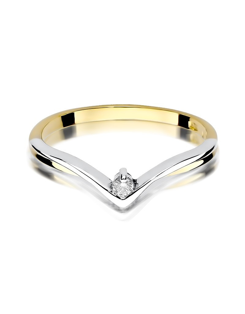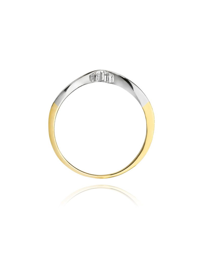 Subtelny, dwukolorowy pierścionek z nowoczesną formą oraz lśniącym brylantem.