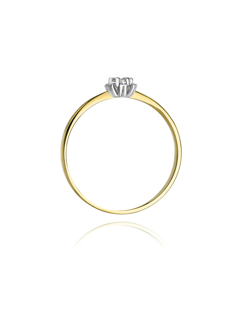 Stylowy pierścionek z żółtego złota z wyjątkowym brylantem, który został oprawiony 6 delikatnymi serduszkami z białego złota.
