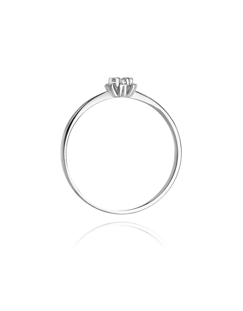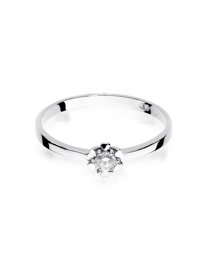 Stylowy pierścionek z białego złota z wyjątkowym brylantem, który został oprawiony 6 delikatnymi serduszkami.