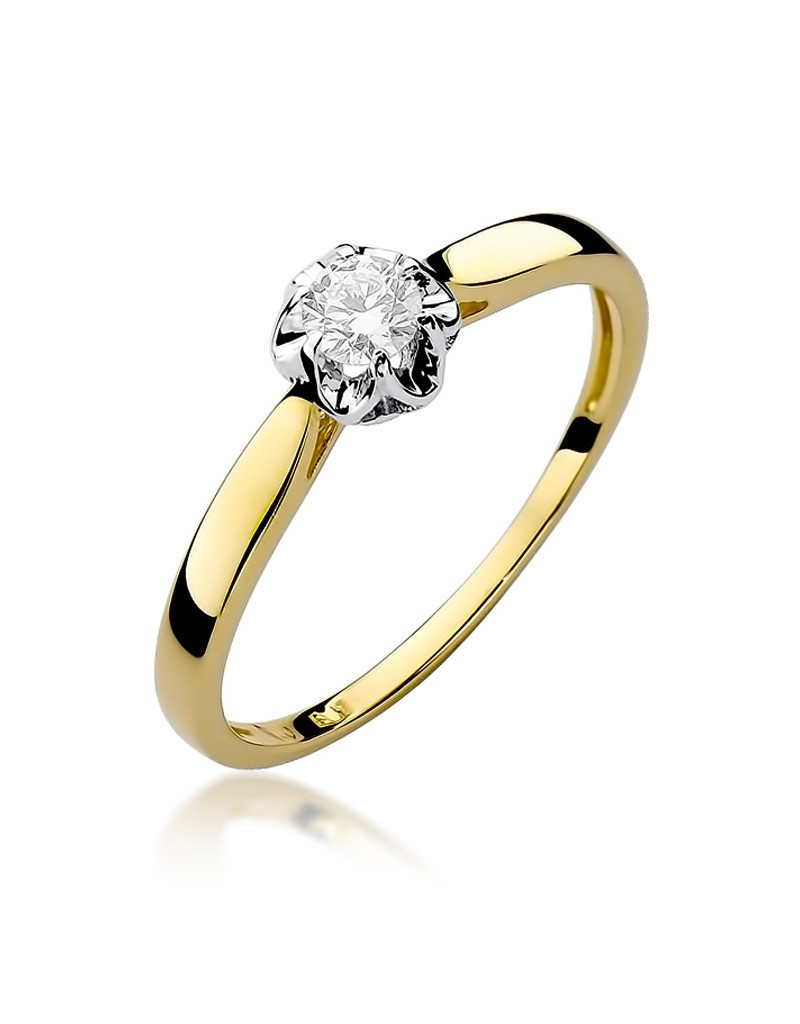 Urokliwy złoty pierścionek z olśniewającym brylantem w fantazyjnej formie.