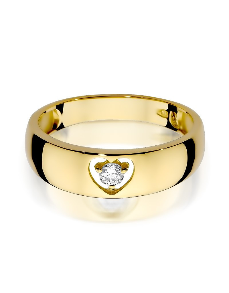 Urzekający pierścionek z żółtego złota z olśniewającym brylantem w romantycznej oprawie w kształcie serca.