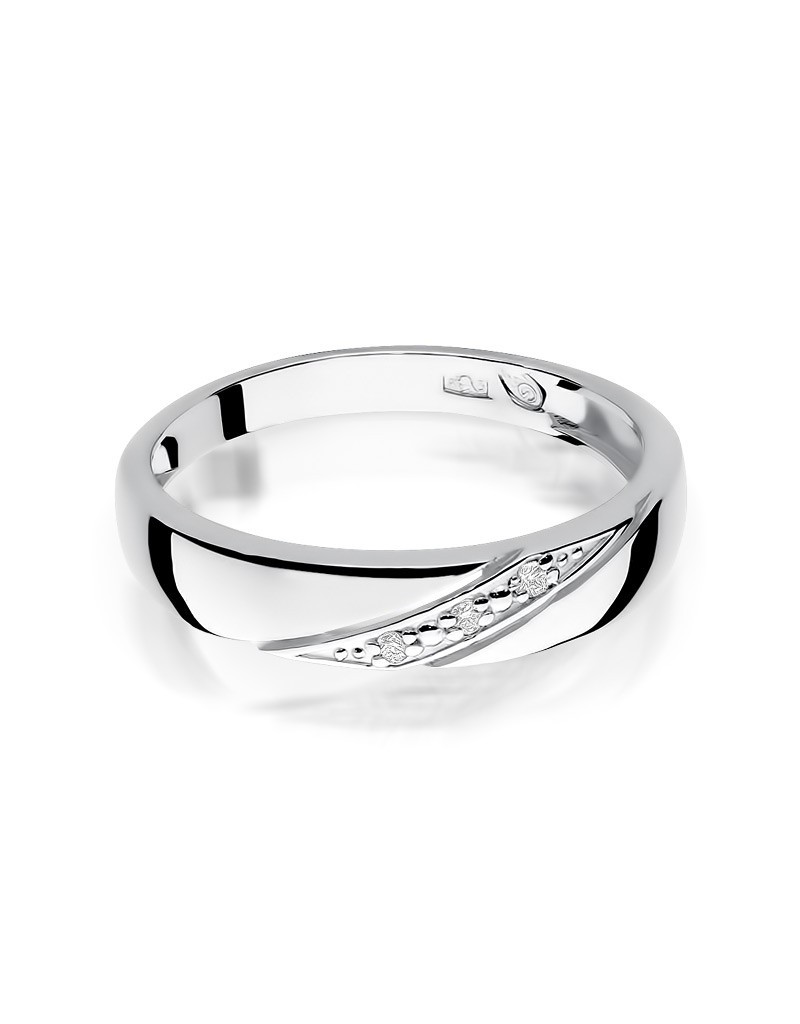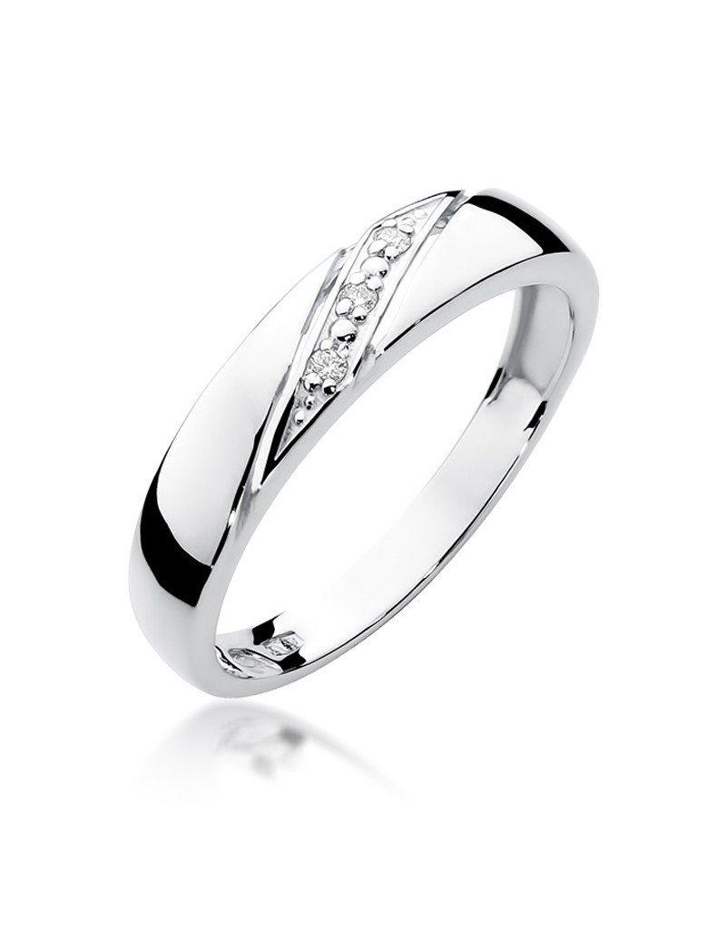 Urzekający pierścionek z białego złota, z delikatnym muśnięciem lśniących brylantów.