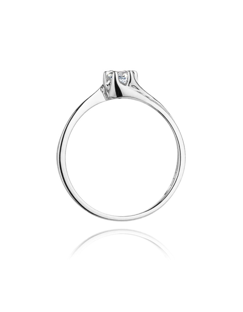 Luksusowy pierścionek w eleganckiej oprawie z olśniewającym brylantem w sześcioramiennej koronie. Wykonany z białego złota.