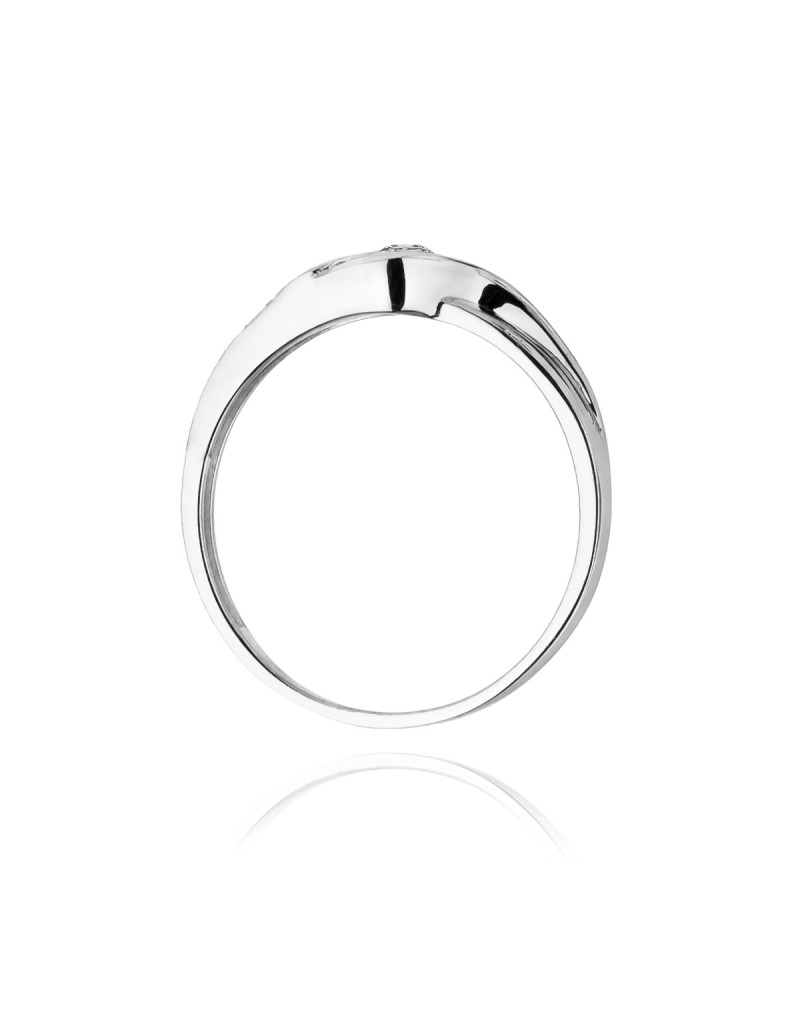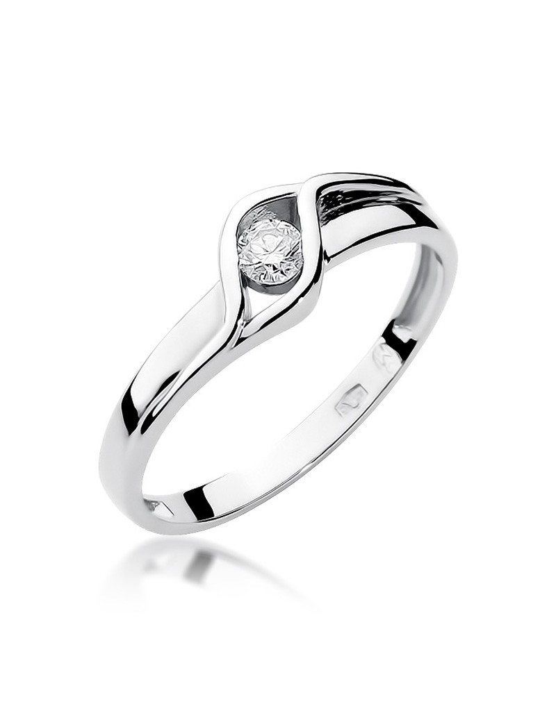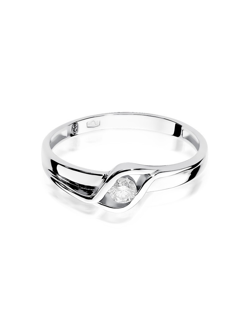 Urzekający pierścionek z biłego złota z lśniącym brylantem osadzonym w niezwykłej fali.