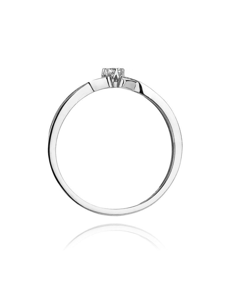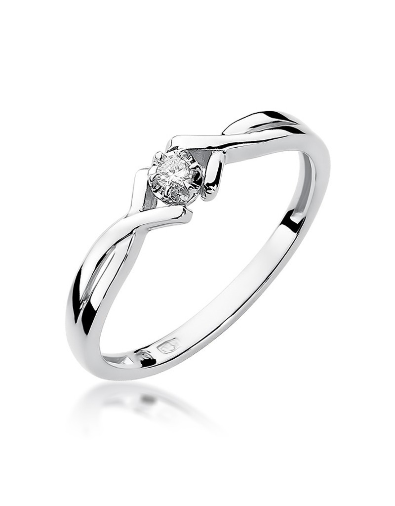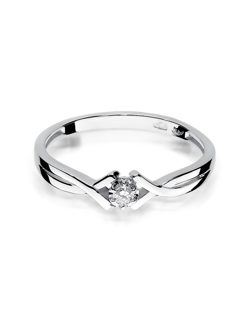 Bajeczny pierścionek z białego złota z krystalicznym brylantem w uroczej formie.