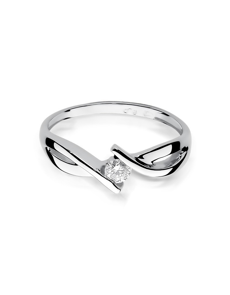 Gustowny pierścionek z błyszczącym brylantem elegancko oprawiony.