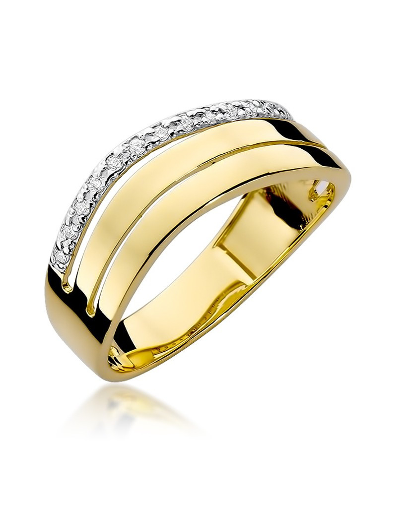 Urzekający złoty pierścionek z 17 brylantami w subtelnej oprawie z delikatnym wykończeniem.