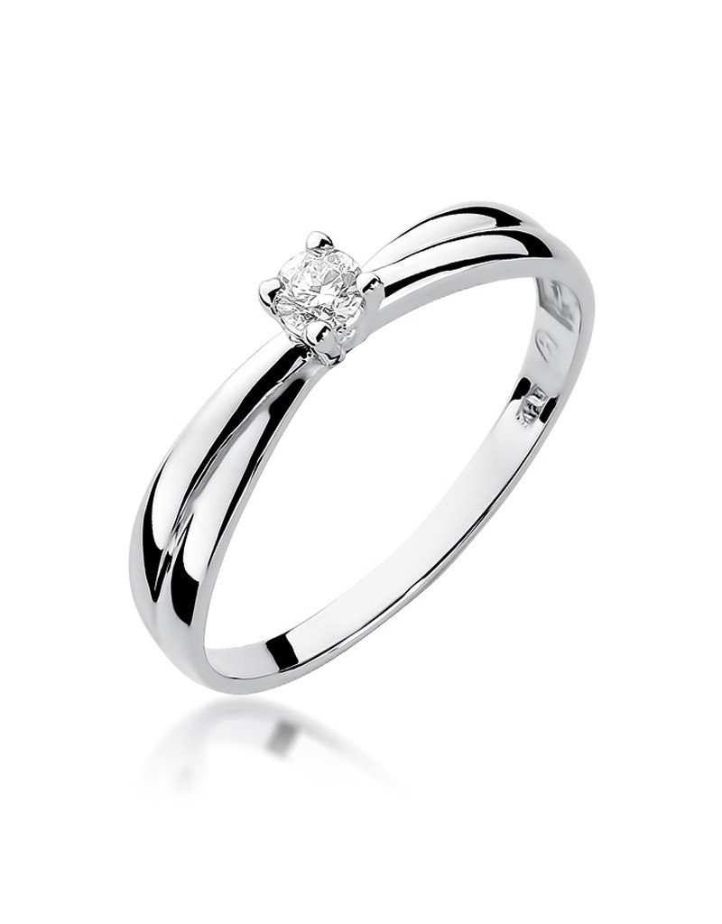 Cudowny pierścionek z lśniącym brylantem w zjawiskowej oprawie z białego złota.