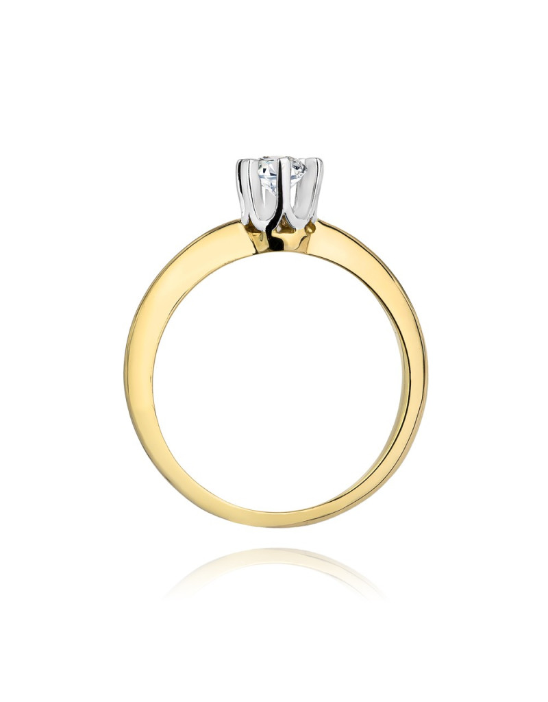 Luksusowy złoty pierścionek z kryształowym brylantem w sześcioramiennej koronie pełnej blasku.