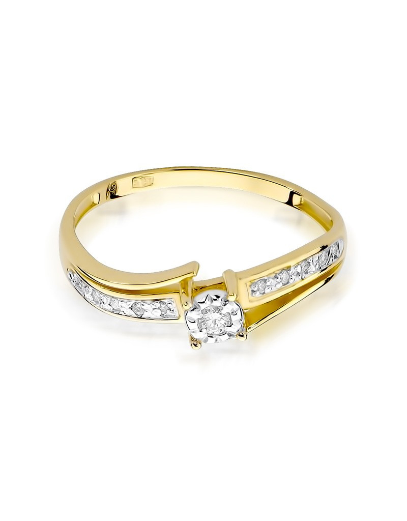 Zniewalający pierścionek z żółtego i białego złota z 11 brylantami w eleganckiej oprawie.