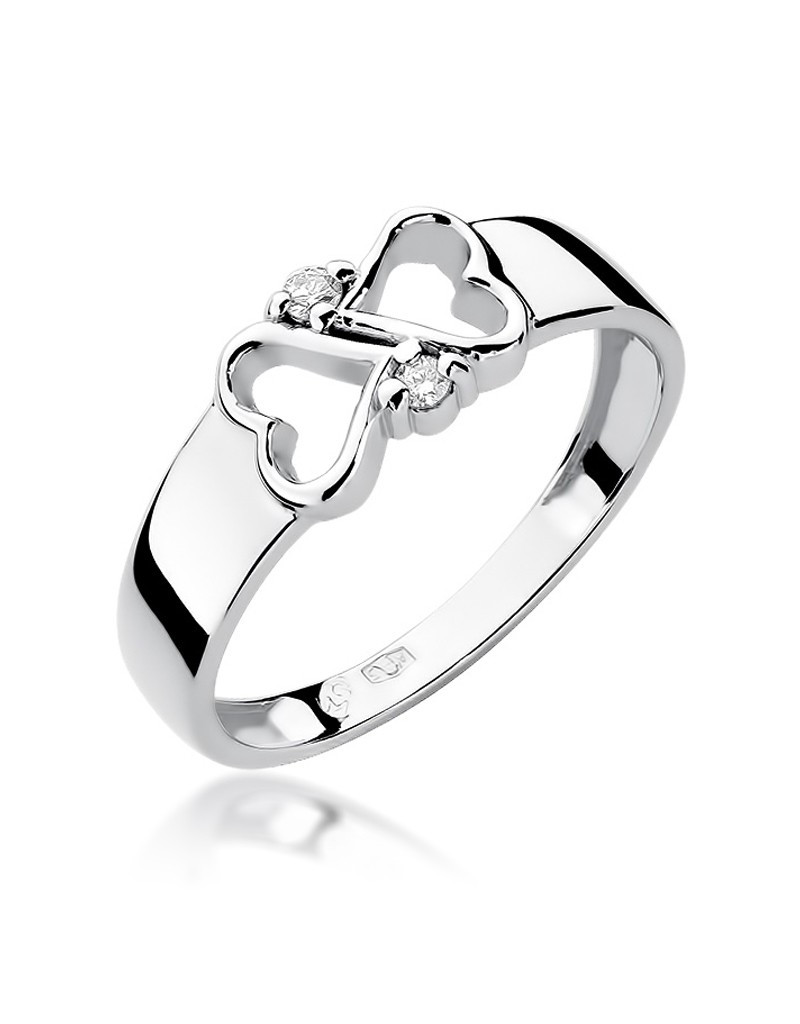 Nowoczesny złoty pierścionek z motywem dwóch serc i 2 brylantami.