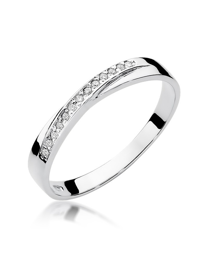Romantyczny pierścionek z białego złota w delikatnej brylantowej oprawie.