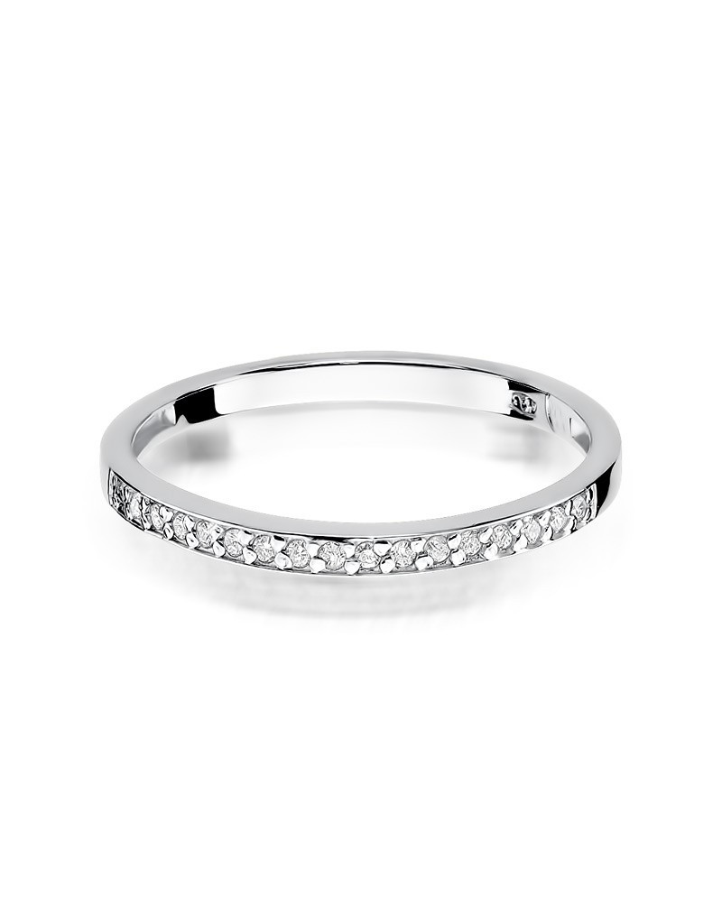 Delikatny pierścionek z białego złota z pełną blasku szyną wysadzoną brylantami.