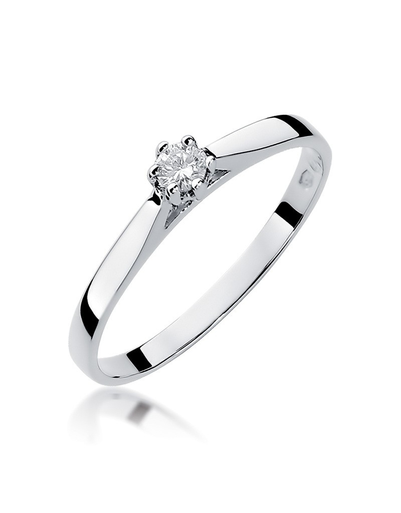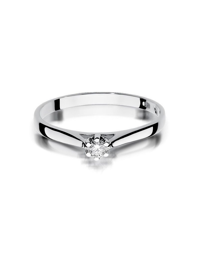 Elegancki pierścionek z białego złota z niezwykłym brylantem w delikatnej sześcioramiennej koronie.