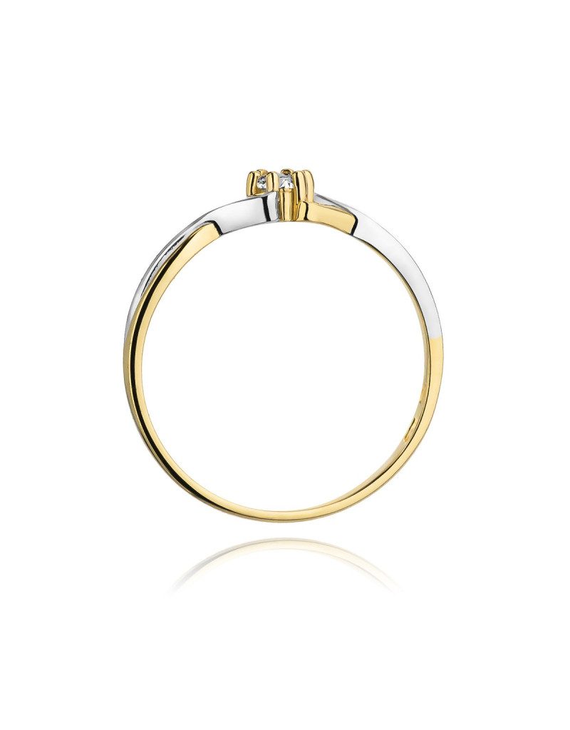 Bajeczny pierścionek dwukolorowy z krystalicznym brylantem w uroczej formie.