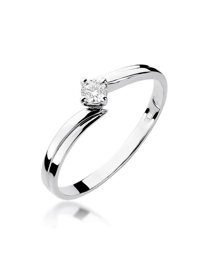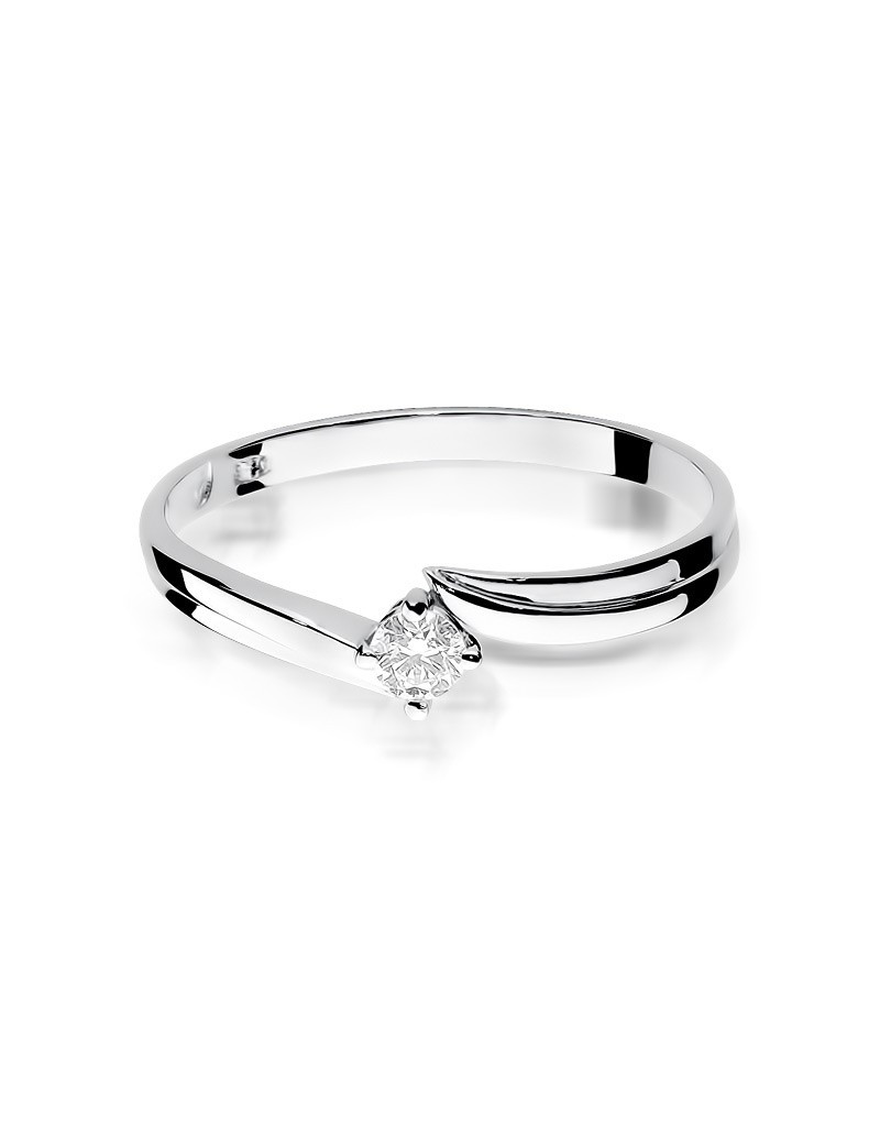 Ponadczasowy wzór pierścionka z białego złota w subtelnej oprawie z krystalicznym brylantem.