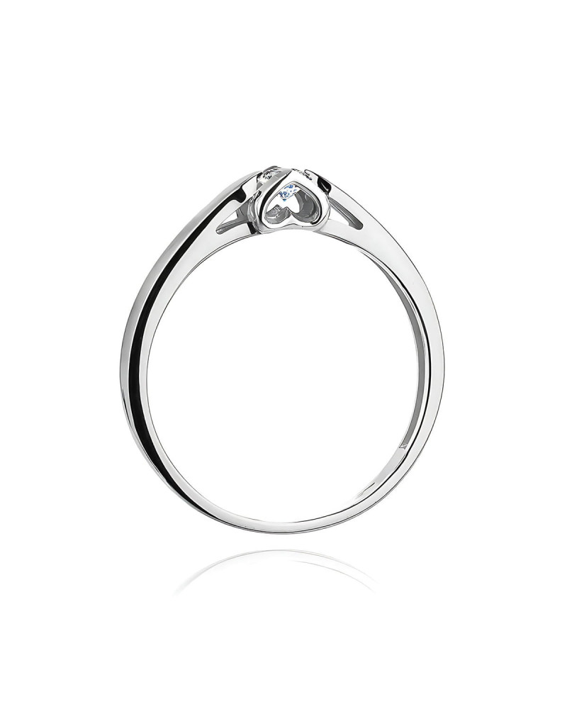 Nowoczesny pierścionek w oryginalnym stylu z białego złota z olśniewającym brylantem.