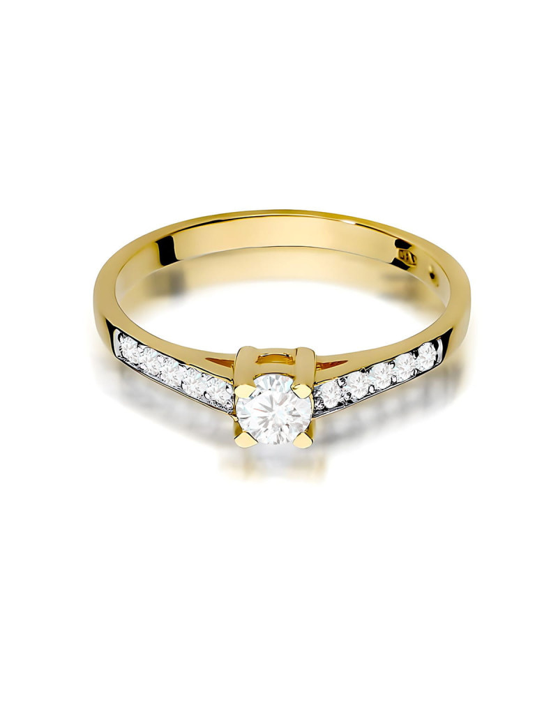Elegancki i subtelny pierścionek z żółtego złota w finezyjnej formie z 11 brylantami.