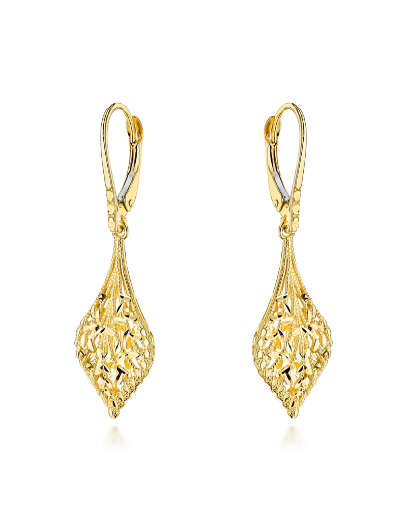 Kolczyki złote listki zdobione diamentowaniem (Gramatura: 2.64)