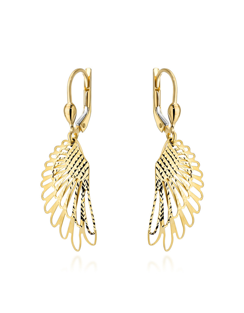 Kolczyki złote skrzydła zdobione diamentowaniem (Gramatura: 2.76)
