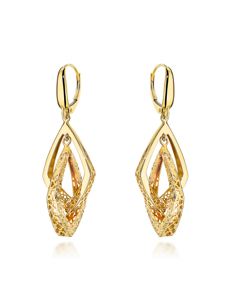 Kolczyki złote podwójne ażurowane romby zdobione diamentowaniem (Gramatura: 3.83)