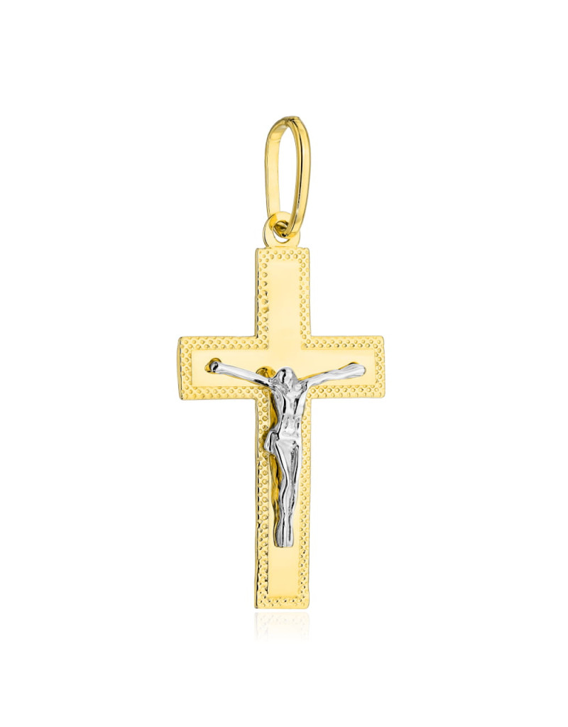 Krzyżyk złoty zdobiony diamentowaniem z Jezusem w dwóch kolorach złota duży (Gramatura: 2.36)