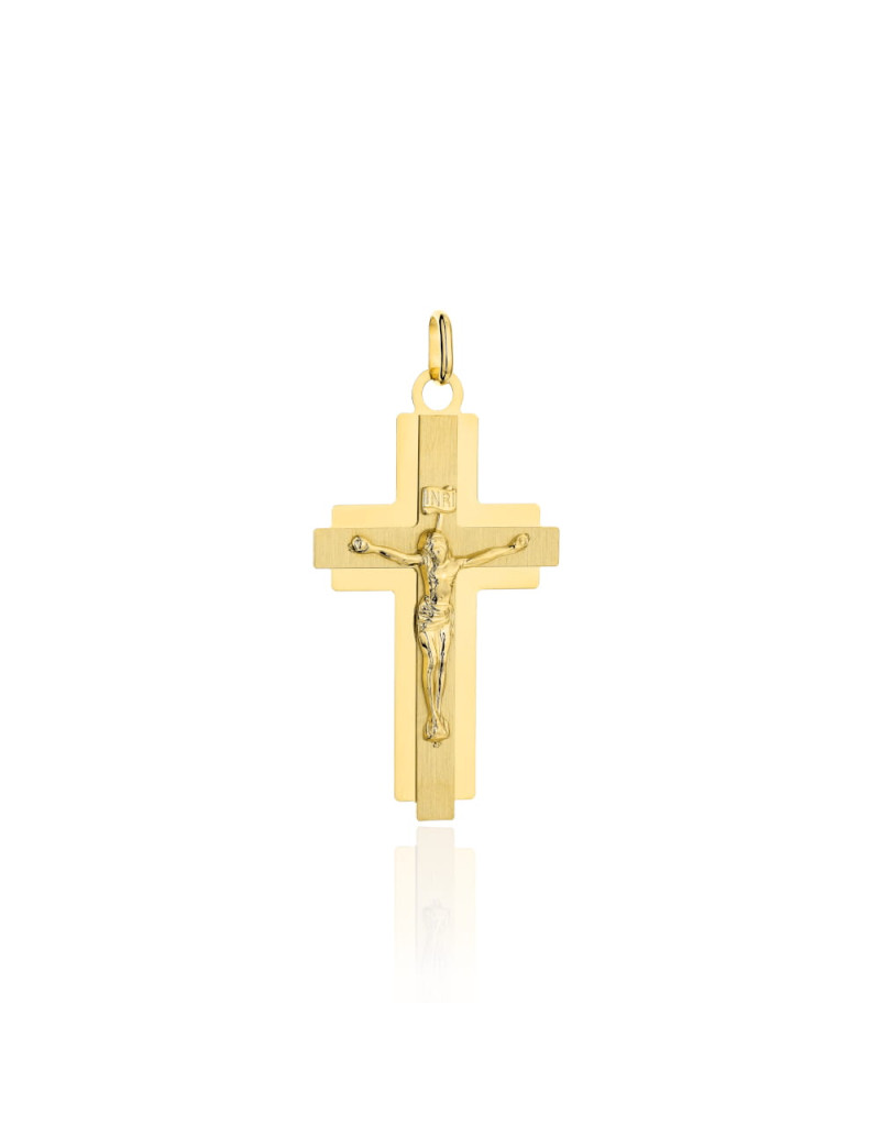 Krzyżyk złoty satynowy w błyszczącej oprawie z Jezusem mały (Gramatura: 1.45)