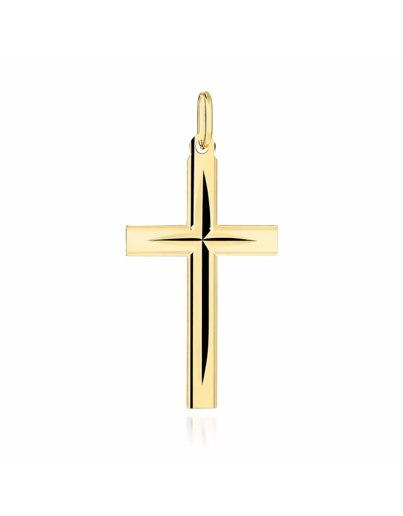 Krzyżyk złoty żłobiony to elegancki i wyjątkowy dodatek, który doskonale sprawdzi się jako pamiątka na ważne okazje. Wykonany z wysokiej jakości złota próby 585, łączy w sobie klasyczny design z nowoczesnym wykończeniem.