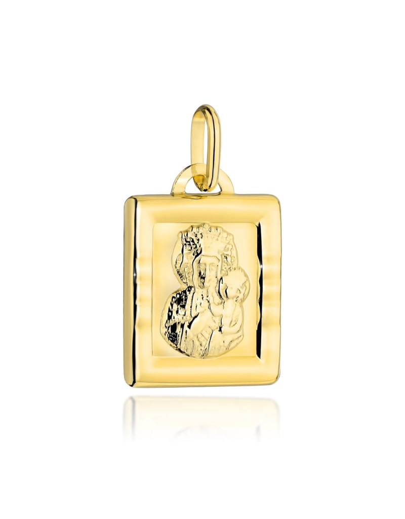 Odkryj piękno i duchowość z naszym złotym medalikiem Matki Boskiej Częstochowskiej w eleganckiej prostokątnej oprawie. Ten wyjątkowy medalik, wykonany z złota próby 585, to idealna pamiątka na ważne okazje, takie jak chrzest, pierwsza komunia, bierzmowanie czy jubileusz.
