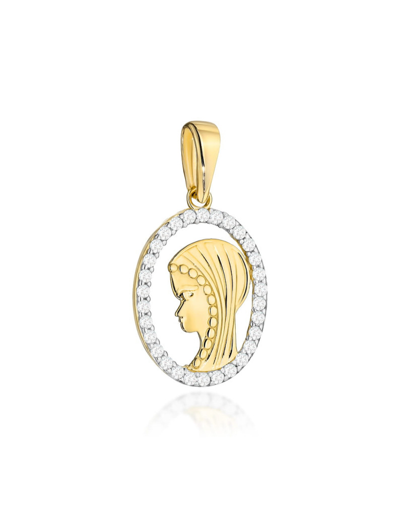 Medalik złoty wizerunek Matki Boskiej w owalu z cyrkoniami (Gramatura: 0.88)