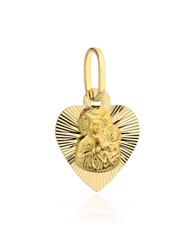 Medalik Matka Boska Częstochowska w diamentowanym serduszku (Gramatura: 0.75)