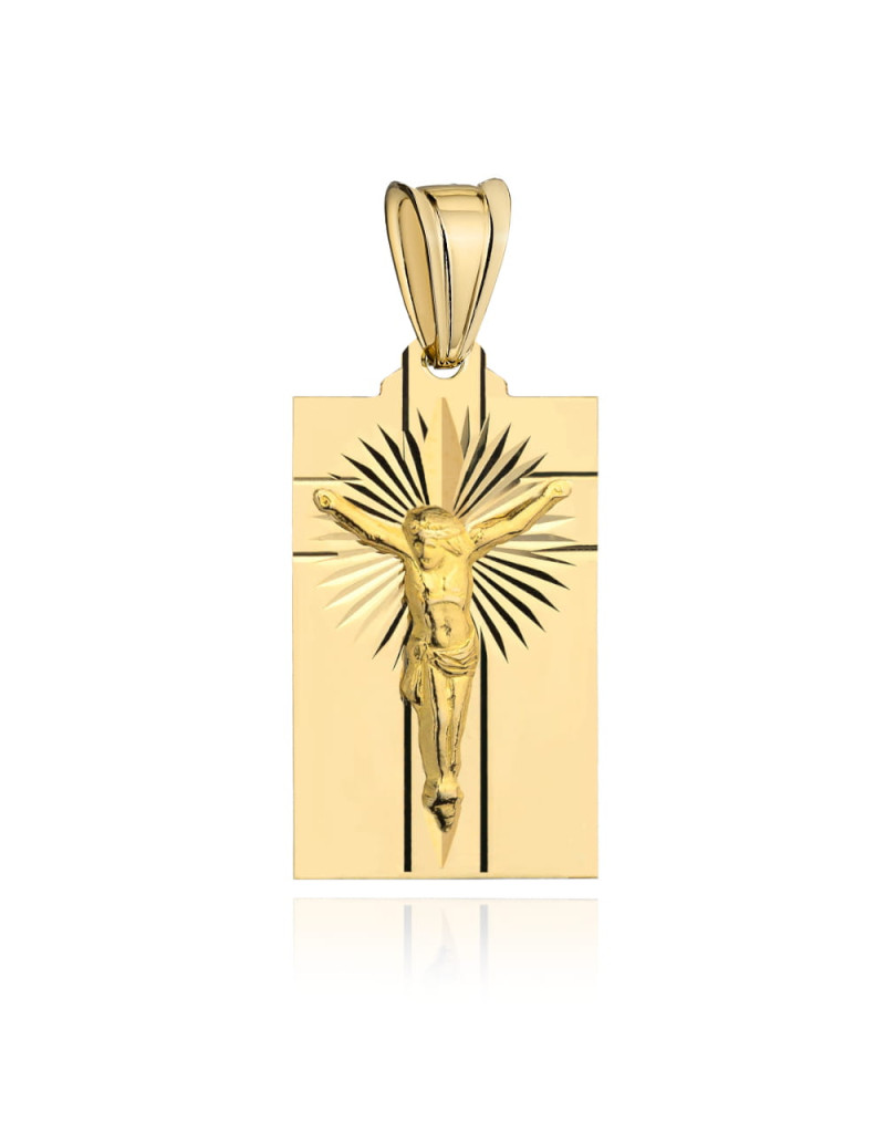 Wybierz złoty medalik z ukrzyżowanym Jezusem i promieniami, aby podkreślić wyjątkowe chwile w swoim życiu lub obdarować bliską osobę niezapomnianym prezentem.