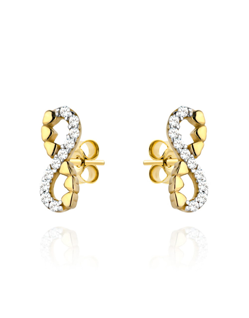 Kolczyki złote znak nieskończoności, cyrkonie i serduszka (Gramatura: 0.97)