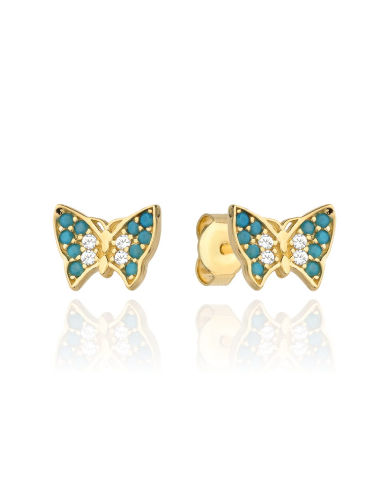 Kolczyki złote motylki z niebieskim kamieniem i białą cyrkonią (Gramatura: 1.25)
