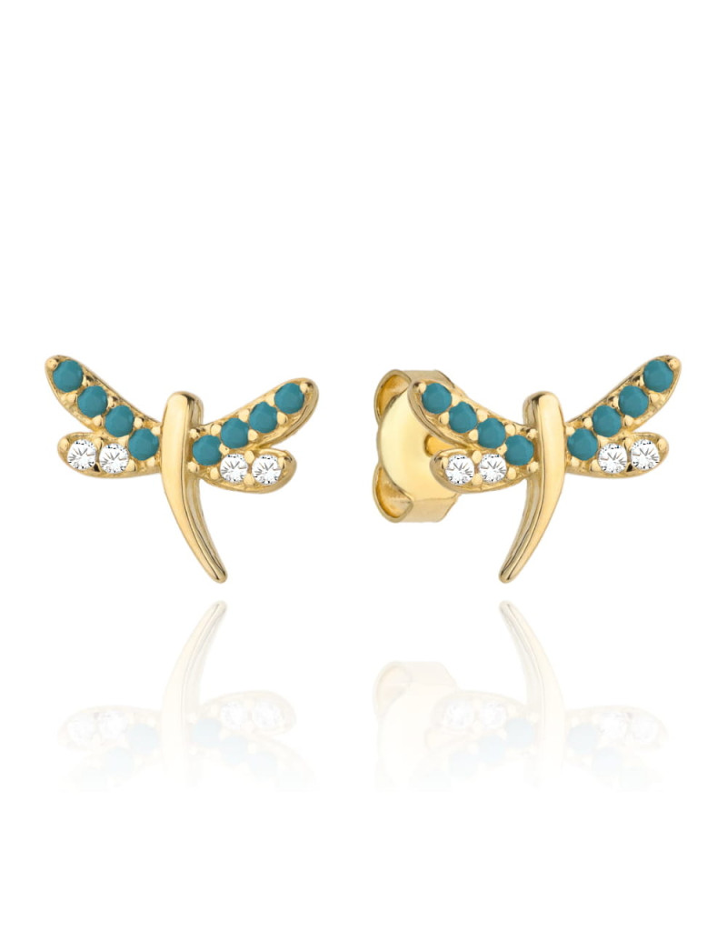 Kolczyki złota ważka wysadzana turkusowymi kamieniami i cyrkoniami (Gramatura: 1.03)