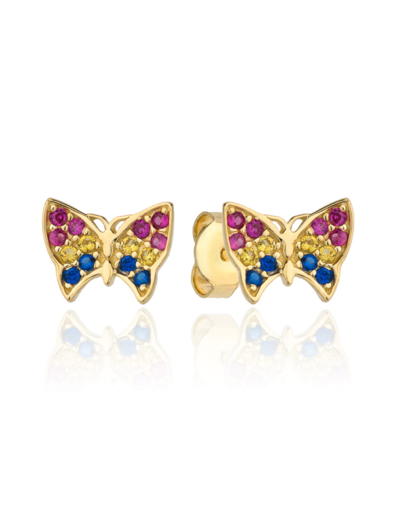 Kolczyki złoty motylek wysadzany kolorowymi cyrkoniami (Gramatura: 1.23)