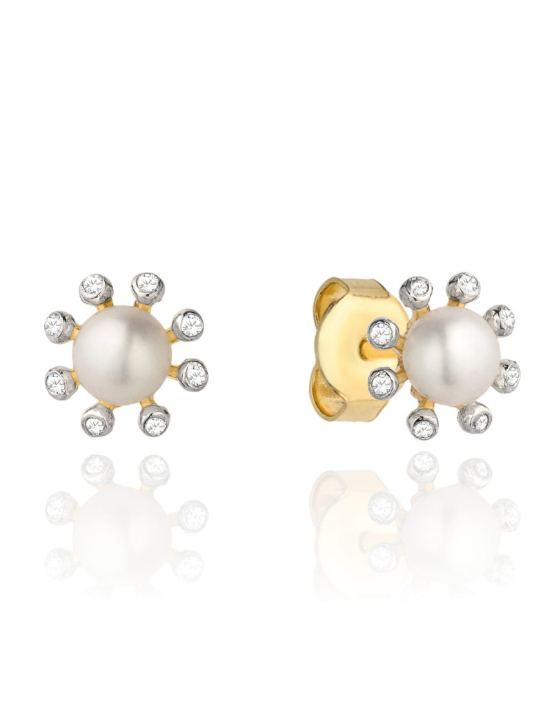Kolczyki złote kwiatuszek z perły i cyrkonii (Gramatura: 1.39)