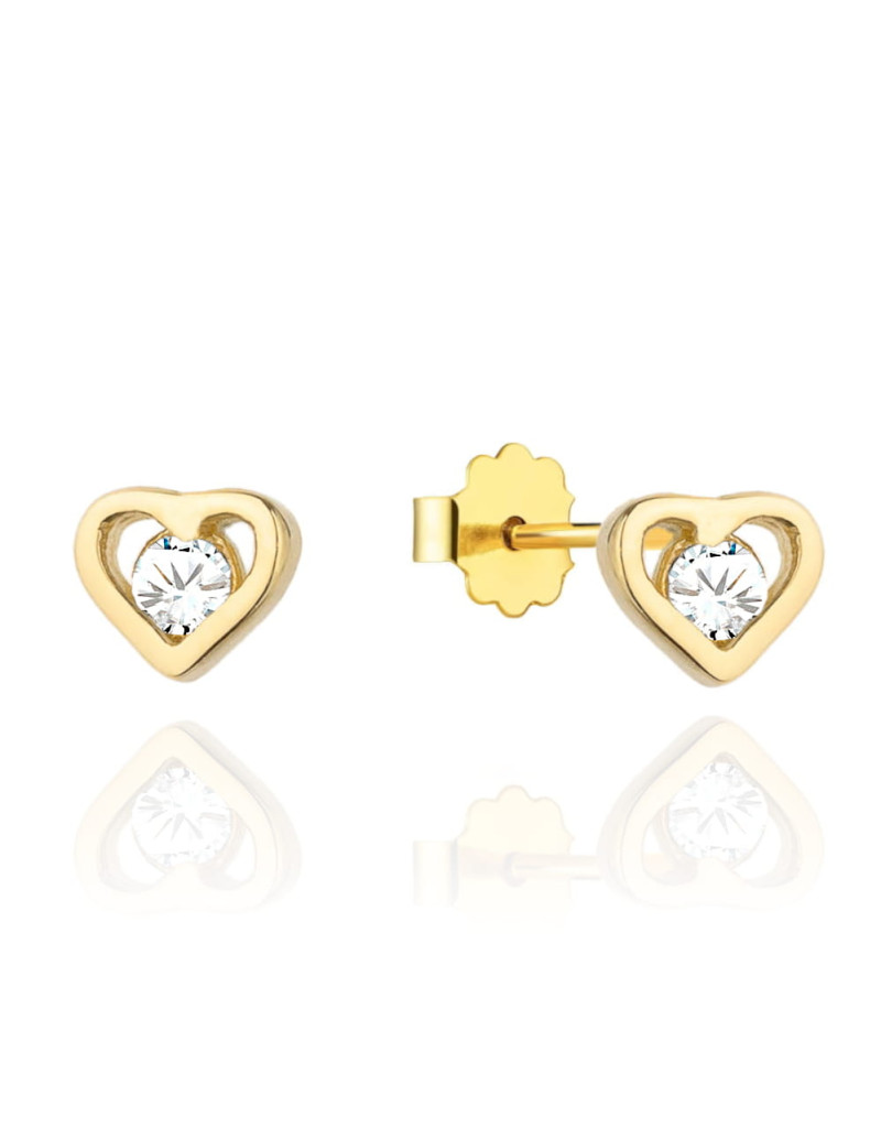 Kolczyki złote serduszka z kamyczkiem w środku na sztyfcie (Gramatura: 0.66)